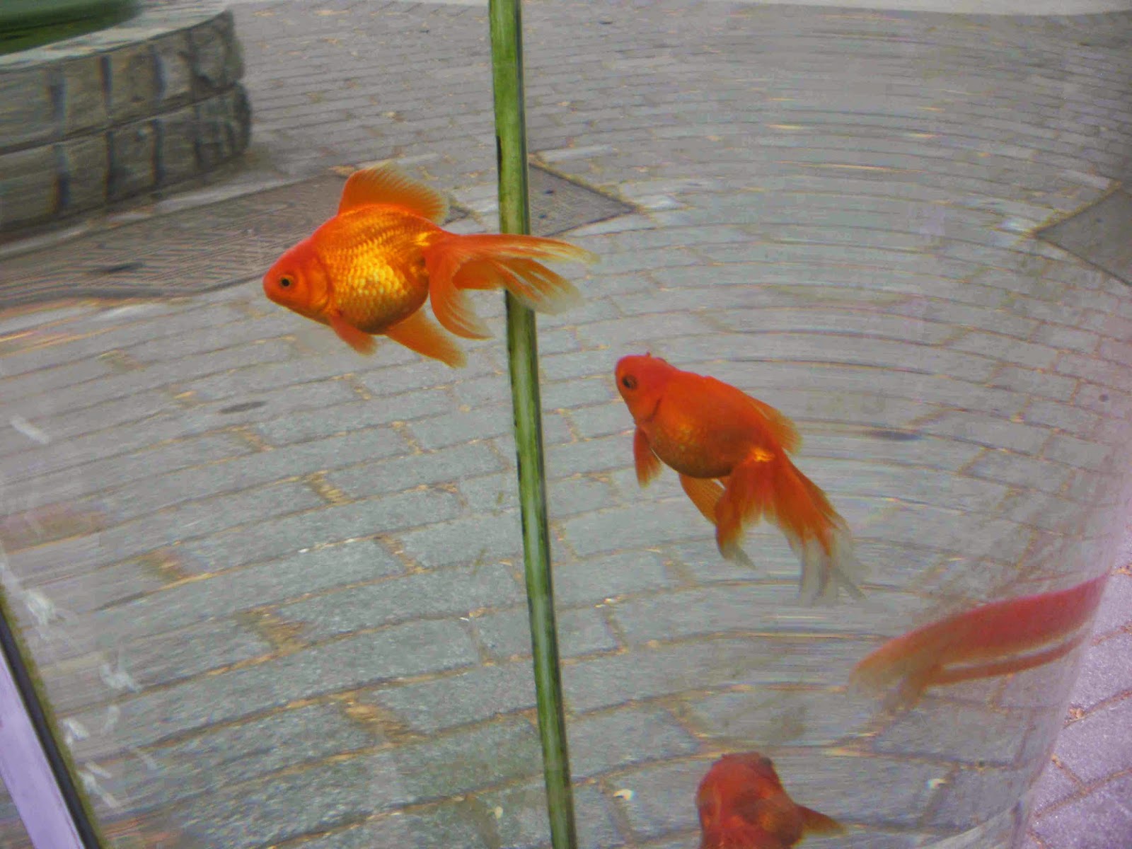 bild är lite kul med guldfiskar i ett stort genomskinligt akvarium från Shanghai Zoo